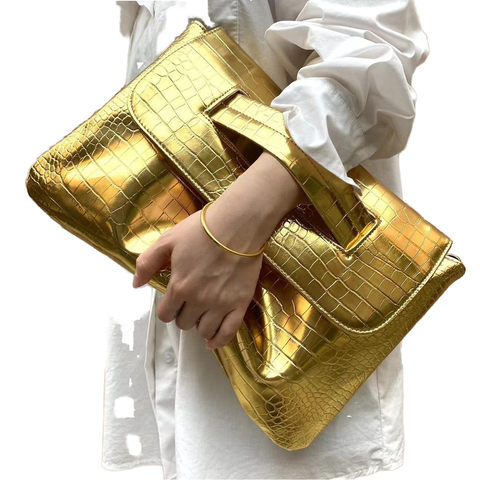 Femmes élégant en cuir PU sac à bandoulière grande capacité fête bal pochette sac de messager motif Crocodile fermeture à glissière
