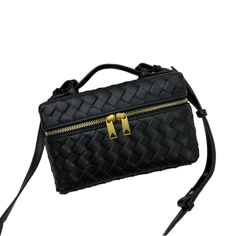 El yapımı bayan örgülü çanta niş doku ile yeni moda çift fermuarlı kutu çanta saf renk yüz omuz Crossbody çanta